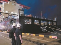 宁波穿山海事处执法人员检查“地中海洛美五号”轮的船舶稳泊情况。(宁波海事局 供图)昨天8点30分,在宁波穿山海事处的保障下,葡萄牙籍“地中海洛美五号”轮从宁波北仑第三集装箱...