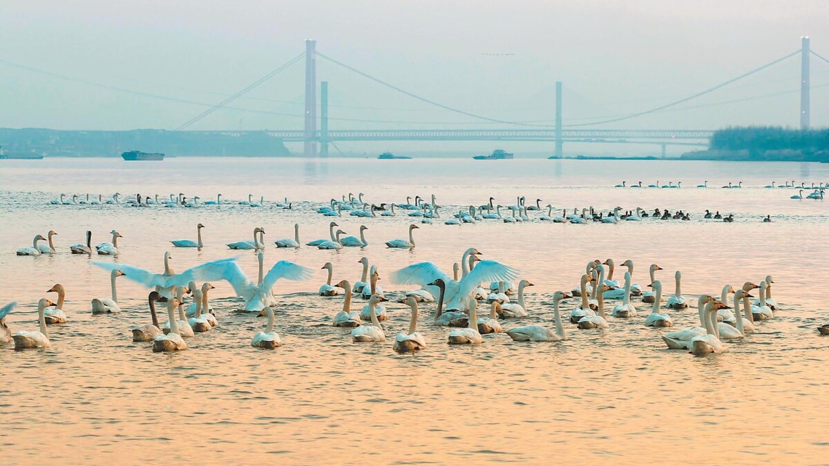 12月16日,长江安徽铜陵段江面,成群候鸟在觅食嬉戏,勾勒出人与自然和谐共生的美好图景。本报通讯员 郜小兵 摄