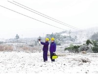 国网杭州市临安区供电公司特巡人员在雪中巡检。1月20日,临安龙岗镇上溪村因“百丈探雪”美景迎来众多游客,当地民宿、农家乐客流大幅上升,用电负荷也随之攀升。国网杭州市临安...