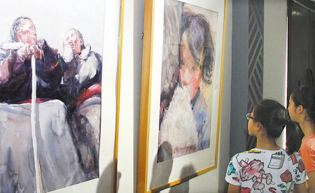 图为观众正在欣赏陈奇绘画作品 “洗尽铅华———陈奇水彩画作品展”昨天上午在位于月湖大方岳第的群星展...MORE>>