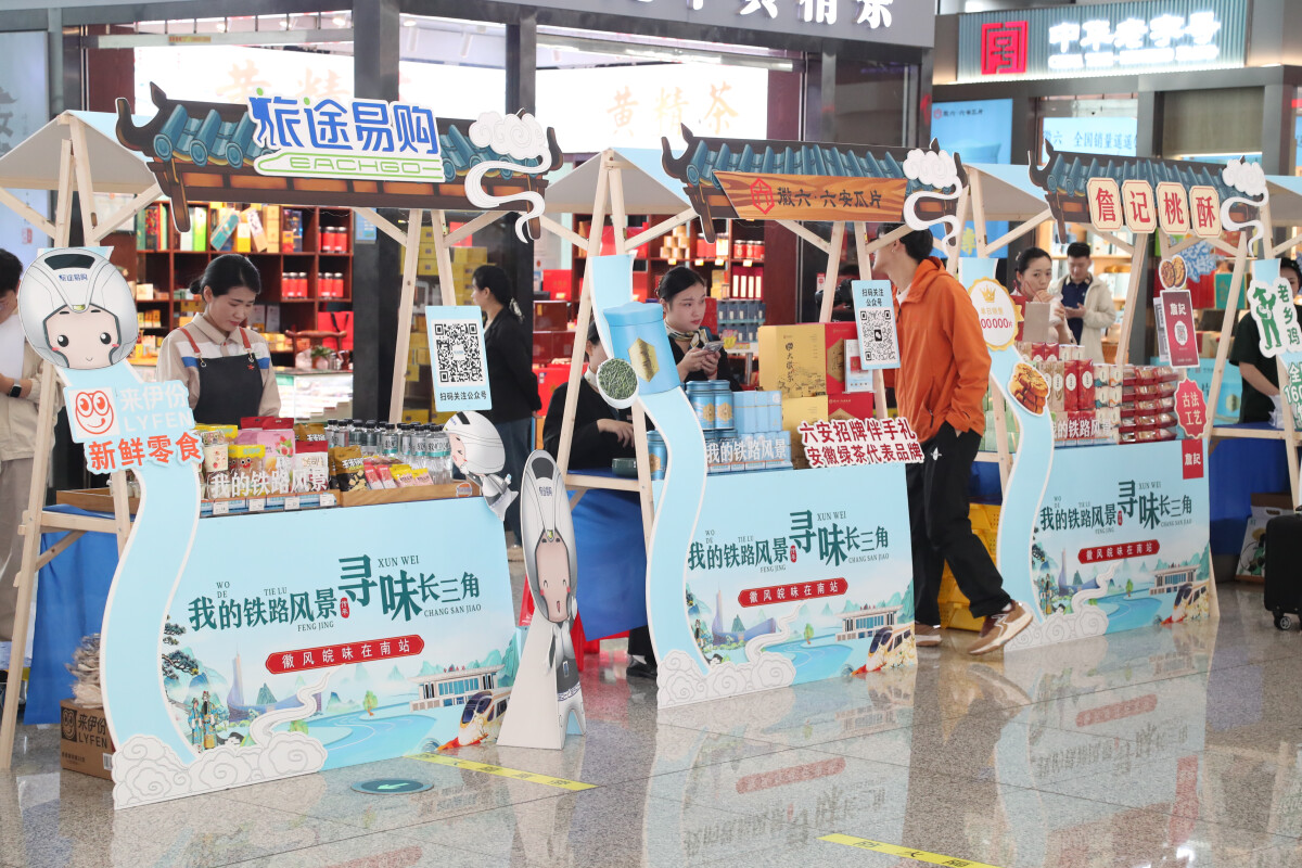 “我们通过汇聚安徽各地非遗美食与老字号品牌,将高铁站从单一的交通‘经过点’,转变为文化旅游的‘目的地’和区域文化的‘展示窗口’,为旅客提供沉浸式体验,努力将高铁站打造为集文化传播与美食体验于一体的‘城市会客厅’。”上铁集团下属新上铁集团公司副总经理黄静表示,此次“我的铁路风景——寻味长三角”主题活动为期一周,将安徽非遗特色美食、文创品牌集合在合肥南站候车厅内,直观展现“徽风皖味”美食文化。