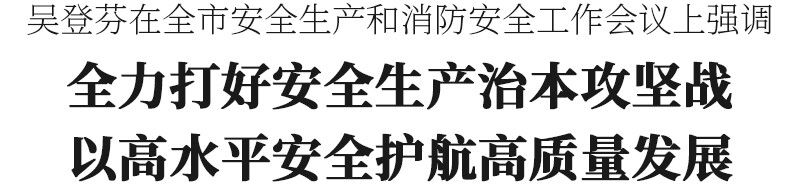 吴登芬指出,去年以来,全市上下统筹发展和安全,推进安全生产治本攻坚,强化重大风险隐患排查整治,有力守护了人民群众生命财产安全。要正视面临形势和存在问题,以时时放心不下的责任感,扎实做好安全生产和消防安全工作,精准施策、锻长补短,确保全市安全生产形势持续稳定向好。