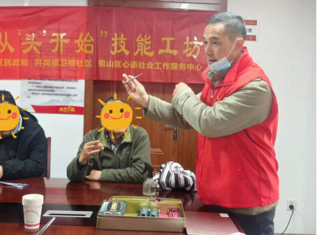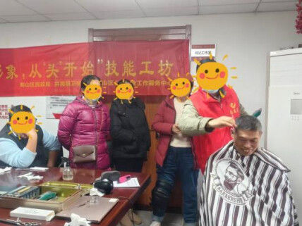 为促进精康融合行动,11月18日,合肥市蜀山区井岗镇卫楼社区联合蜀山区心语社会工作服务中心在太阳湾小区党群服务站开展“焕新形象,从‘头’开始”理发技能培训活动。