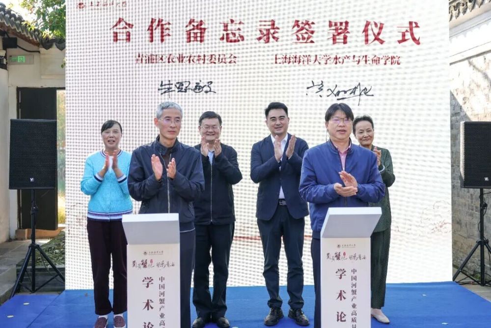 活动上,王平、王宏舟、倪向军等见证青浦区农业农村委员会、上海海洋大学水产与生命学院共同签署合作备忘录。据介绍,在合作框架下,上海海洋大学聚焦河蟹等水产养殖品种的良种选育、高质量苗种培育、绿色生态养殖示范、品牌建设以及人才培养等方面,与青浦区全面深化合作,构建全方位、宽领域、多层次的区校战略合作关系。