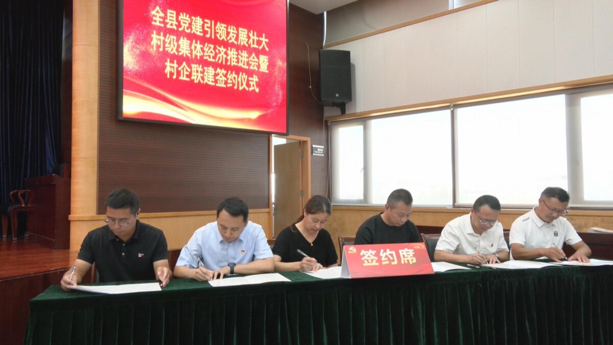 签约现场,全县21个欠发达村党组织书记与结对企业负责人分批签订《“党建引领村企联建”结对协议书》。《协议》明确,结对双方将共同建设党建阵地、盘活闲置资产、推动产品销售、强化要事共商、推进中心工作。