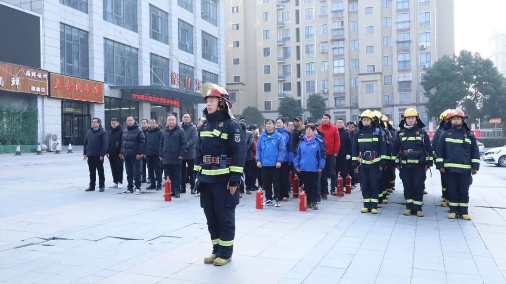 活动模拟高层建筑突发火情,随着警报声响起,区消防救援局组织消防员迅速抵达现场,铺设水带、架设云梯,从外部对“起火点”展开扑救;与此同时,另一组消防员携带专业设备进入楼内,逐层搜救被困人员,引导楼内群众按照预定疏散路线,用湿毛巾捂住口鼻,弯腰低姿有序撤离至楼外安全区域。演练结束后还进行了消防安全知识宣讲。