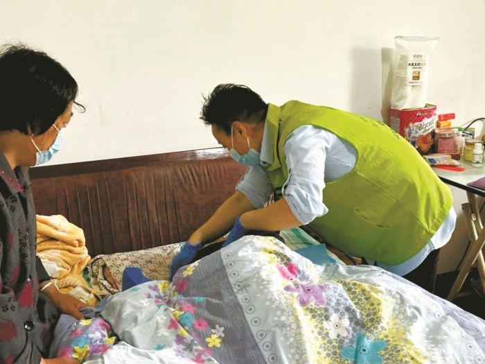 护理人员在照顾失能人员。