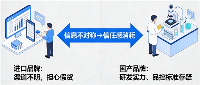痛点四:信任真假关。 代购的进口品牌,担心渠道不明,买到假货;国产品牌,又对其研发实力和品控标准心存疑虑。在信息不对称中,信任感被不断消耗。