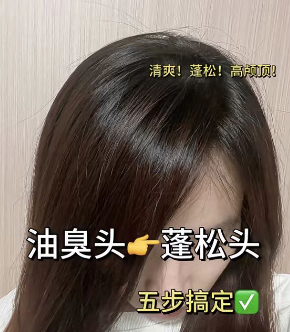 头皮发质状态:每日必须洗头清洁,午后发根油光明显,头皮黏腻有异味,细软扁塌发质,发顶全程贴头皮,显脸大且无精神,偶尔伴随头皮瘙痒、头屑问题。