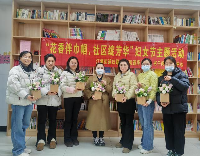 江浦街道华光社区以“花香伴巾帼,社区绽芳华”为主题,将暖心茶话与创意插花相结合,女性朋友们围坐畅谈生活点滴,再动手修剪枝叶、搭配花材,让清新雅致的花艺作品承载对生活的美好期许。老虎桥社区联合四季书房开展“指尖绿意·绽放芳华”多肉盆栽DIY活动,志愿者讲解多肉养护知识并现场示范,大家亲手栽种、装饰,一盆盆绿意盎然的多肉盆栽,让女性同胞在感受自然之美的同时,收获创作的快乐。
