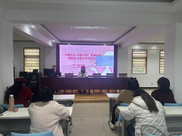 街道群团工作办还在新区妇联、浦口区人民法院的指导和支持下,开展“巾帼学法 护航万家”家事纠纷调解能力提升专项培训,邀请法院法官和心理咨询师授课,为辖区17家社区妇联干部、家事调解员讲解婚姻家庭法律适用、家事调解技巧及心理疏导方法,以“法律赋能+心理润心”提升基层调解人员专业能力,筑牢家庭和谐防线,为基层社会治理注入巾帼力量。