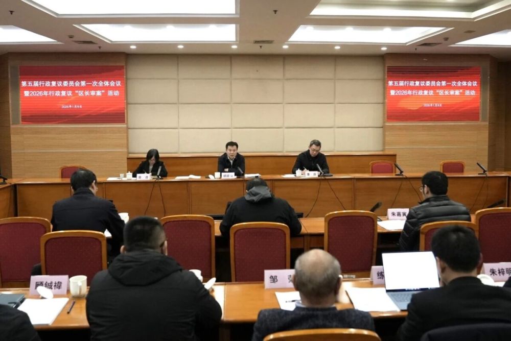1月8日,普陀区召开第五届行政复议委员会第一次全体会议暨2026年行政复议“区长审案”活动,深入落实新修订的行政复议法及行政复议体制改革部署,以机制创新赋能法治政府建设,为区域高质量发展筑牢法治保障。副区长、区行政复议委员会主任胡建会出席活动。第五届行政复议委员会全体委员、相关执法机关和街道镇参加会议。