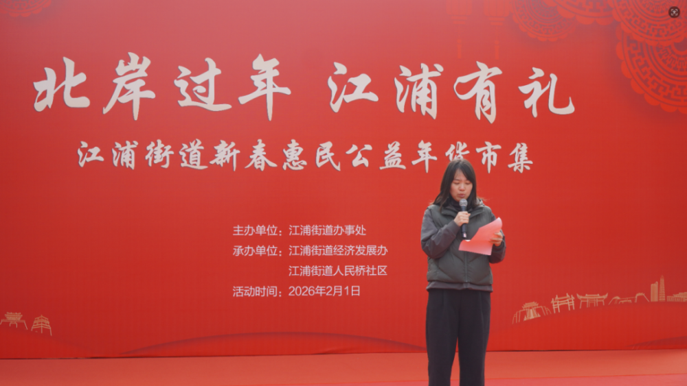 春回大地暖,福满江浦情。为弘扬中华优秀传统文化,营造喜庆祥和的新春氛围,丰富居民节日生活,2月1日上午,江浦街道“北岸过年 江浦有礼”新春惠民公益年货市集在热闹温馨的氛围中拉开帷幕。辖区居民、共建单位代表、爱心企业负责人欢聚一堂,赶大集、办年货、赏演出、享服务,共迎新春佳节,传递邻里温情。
