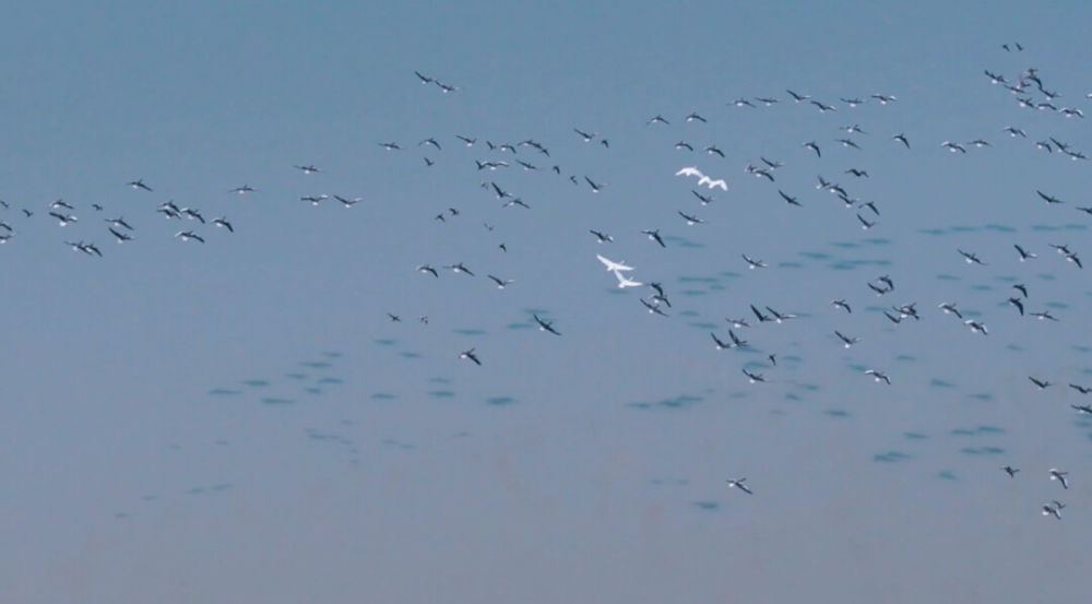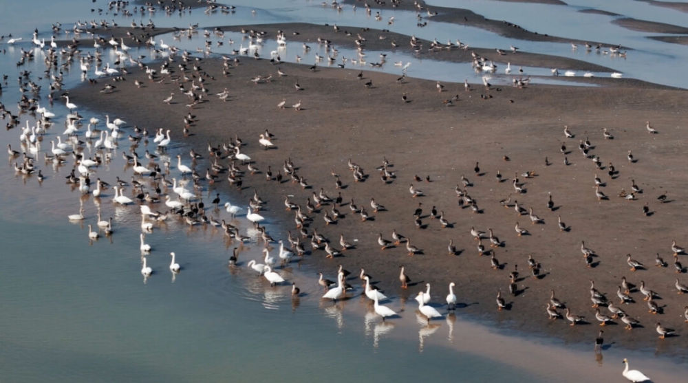 近日,义安区胥坝乡江心洲的江滩上,今冬首批越冬候鸟如约而至。
