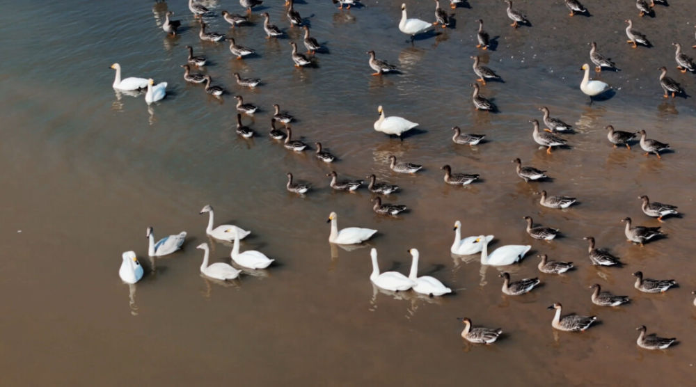 人类守着江滩的宁静,候鸟带来冬日的鲜活,这大概就是“人与自然和谐共生”最生动的模样。