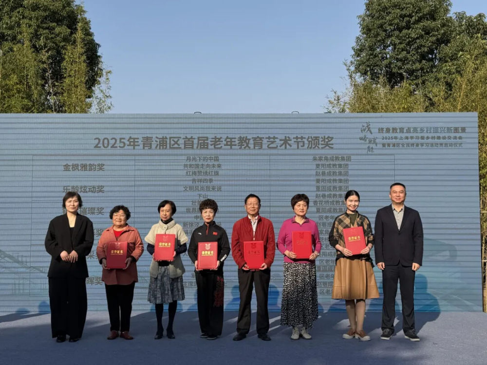 活动为2025年首届老年教育艺术节、青浦市民诗歌节获奖者颁奖——其中市民诗歌节的“筑梦现代化,共绘新图景”原创诗歌征集及朗诵之星评选活动中,多项作品斩获市级奖项,彰显了青浦老年教育与市民文化生活的丰硕成果。同时,四家新增的“青浦区市民文化传承及科学创新社区学习坊”以及新一轮“上善悦学・乐研工坊”(2025-2027年)青浦区社区教育教研基地、第六批上海学习型乡村依次获牌,标志着青浦终身教育的阵地建设、课程研发与师资培养体系进一步完善。