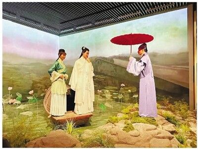 获奖项目以“微改造、精提升”为核心理念,推动文化与科技深度融合。通过透明互动屏演示缫丝、凿玉流程,微雕区支持360度旋转放大展品,裸眼3D大屏呈现“飞鸟化扇”奇观,动态复原巨幅《清明上河图》场景,以数智化手段让文物真正“活起来”。同时,场馆以场景重构打造沉浸式体验:序厅鸡血石雕搭配弧形巨幕与天幕,景致随季节更迭;刀剪剑博物馆的三维影片带来飞行观影感,扇博物馆以动态光影交织花鸟扇影,伞博物馆长廊流转四季江南烟雨。此外,四大动画IP“御剑、婳伞、霓扇、匠宝”以数字人、三维动画形式融入展陈,伞博物馆的许仙白娘子AI互动机器人,将“还伞”情节从静态蜡像升级为实时交互的动态文化空间,实现展陈颠覆性突破。
