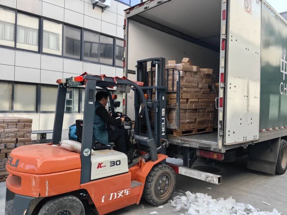 11月24日上午,记者在铜雀二乔公司看到,工人们正在忙碌打包货物(白姜),邮政人员正在扫码贴标签,铜雀二乔公司工作人员将整理好的货物通过叉车运送到货车上……现场一片繁忙的景象。