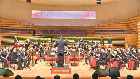 从激昂奋进的《光明行》,到婉转深情的《春江花月夜》;从江南丝竹的细腻韵味,到大型民族管弦乐的恢宏气度,一系列经典与创新曲目展现出江阴民乐的深厚底蕴与时代风采。演出中,锡剧元素的融入成为一大亮点。江阴市锡剧评弹艺术传承中心优秀青年演员朱家怡、姜佳晨登台亮相。“借这个平台实现民乐与地方戏曲的融合发展。”江阴市刘天华民族乐团团长沈鸣华介绍。