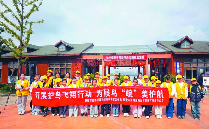 10月25日上午,由铜陵市自然资源和规划局主办的“保护野生动物宣传月”科普活动在铜官区西湖湿地公园开展,活动以“开展护鸟飞翔行动,为候鸟‘皖’美护航”为主题,邀请了30名爱国小学校园小记者参与。