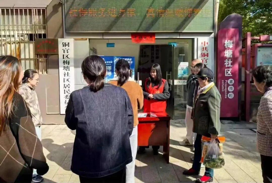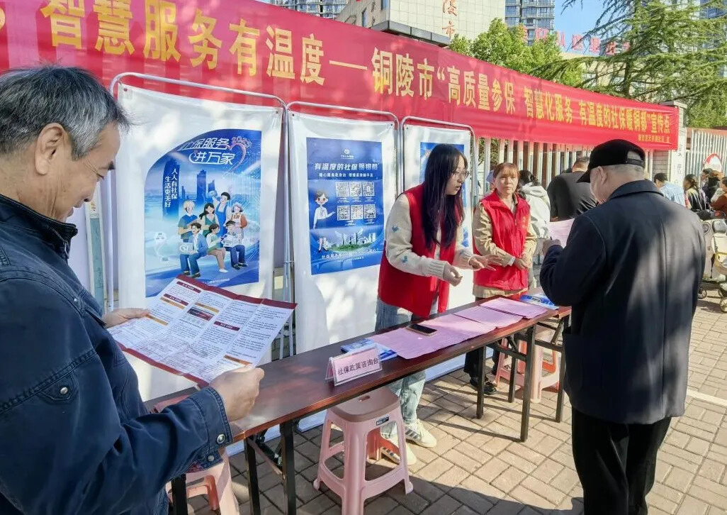 10月23日,新城办梅塘社区设立“高质量参保智慧化服务 有温度的社保暖铜都”宣传点,开展社保政策宣传,切实提升老年群众获得感、幸福感、安全感。(新城办 汪依凡)