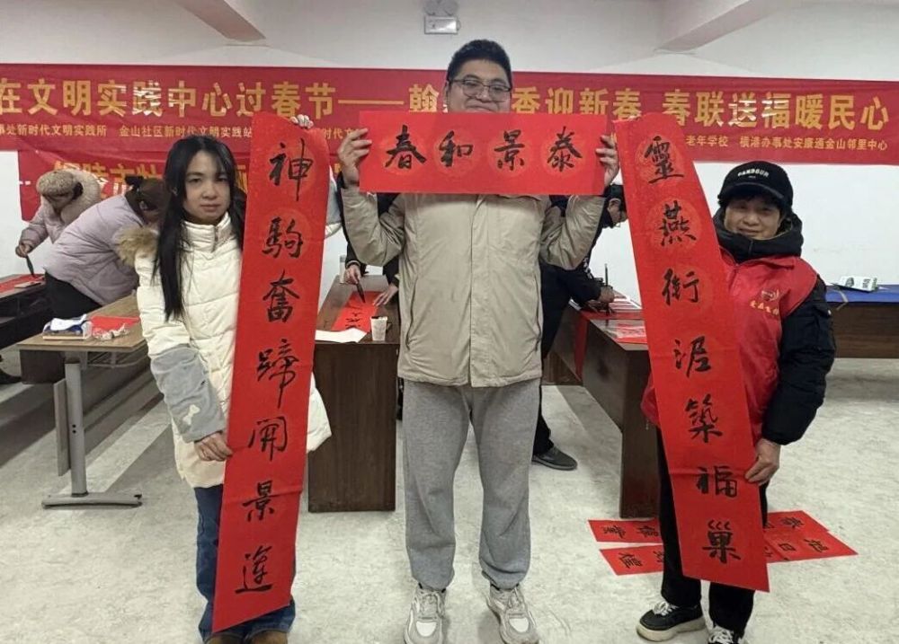 2月6日,横港办联合爱在飞扬志愿者协会、李琴书法家协会等开展“我在文明实践中心过春节”——“翰墨飘香迎新春 春联送福暖民心”活动,为春节增添了浓浓的喜庆氛围。(横港办 张慧)