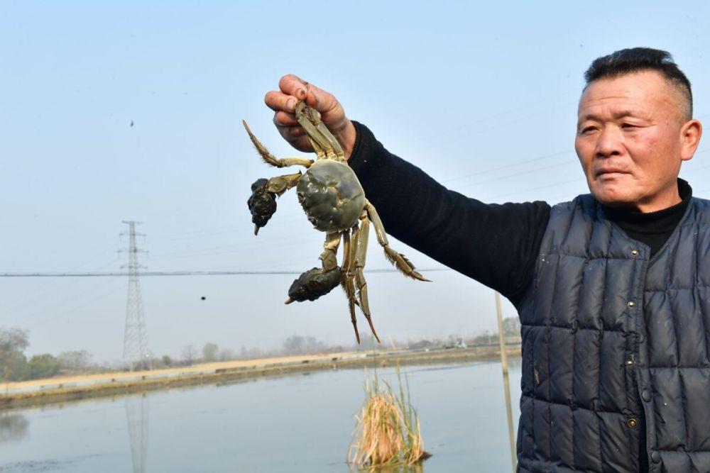 58岁的杭胜丰是巢湖市夏阁镇沿河村人,养蟹已有六七年。从最初“试一试”,到如今养殖规模扩大到50多亩。今年中秋后,他的螃蟹陆续上市;11月下旬起,公蟹进入销售高峰。目前母蟹已售超七成,公蟹正值旺季。“今年亩产200多斤,比往年略低,主要是受夏季高温影响。”杭胜丰说。