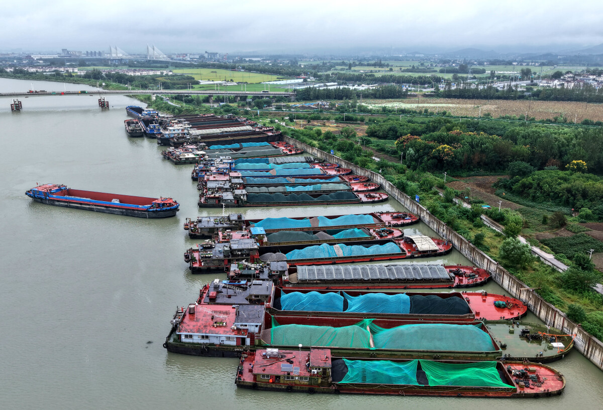 9月24日,为防范应对今年第18号台风“桦加沙”可能带来的外围影响,在合裕线航道裕溪河水域,大批货船提前选择安全地点停靠,锚固船只,做好防范措施。