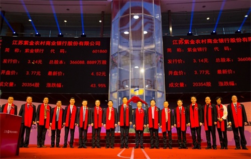 2019年1月3日,紫金农商银行在上海证券交易所正式挂牌,成为全国首家A股上市的省会城市农商行,也是2019年首家上市银行,江苏省第8家上市银行,江苏省第6家上市农商银行。