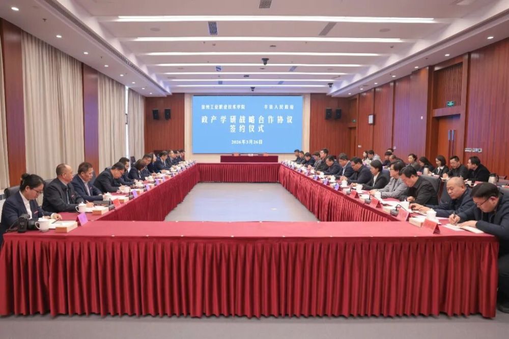 3月26日上午,丰县人民政府与徐州工业职业技术学院政产学研战略合作协议签约仪式举行,双方携手搭建校地合作新平台,深化产教融合与校企协同发展。徐州工业职业技术学院党委书记刘莹,院领导张芳儒、侯亚合;丰县县委副书记、县长鹿飞,县领导邓传奇、李全利、韩运鹏、王惠敏等参加签约仪式。