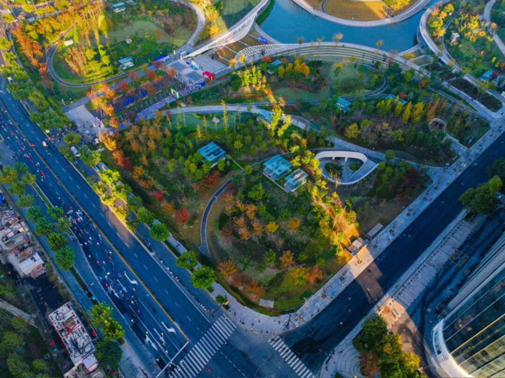 赛道以敦煌路为起点,围绕TOP中央公园,沿途串联桃浦智创城、祁连山路景观大道、英雄金笔厂旧址、金环广场、国金体育中心等普陀地标。沿线风光旖旎,现代城市景观与工业遗存交相辉映,跑者以脚步丈量区域发展脉络,亲身感受普陀卓越的建设成果。