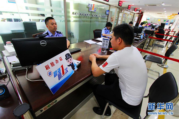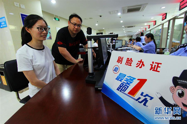 6月11日,当地居民在台州市路桥区行政服务中心体验“刷脸办证”。近日,浙江省台州市路桥区行政服务中心公安窗口为方便群众办事,推出“刷脸办证”服务,市民即使忘记带身份证、户口簿也可以“刷脸”办理户籍业务。此举给群众办事带来便利,受到群众欢迎。