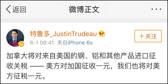 其实对于加拿大而言,与美国展开贸易战实属被逼无奈。加拿大的贸易与南边的邻居密不可分,其出口的76%和进口的52%都依赖美国。而美国本次选择的钢铁和铝制品,正好触及了加拿大的要害。