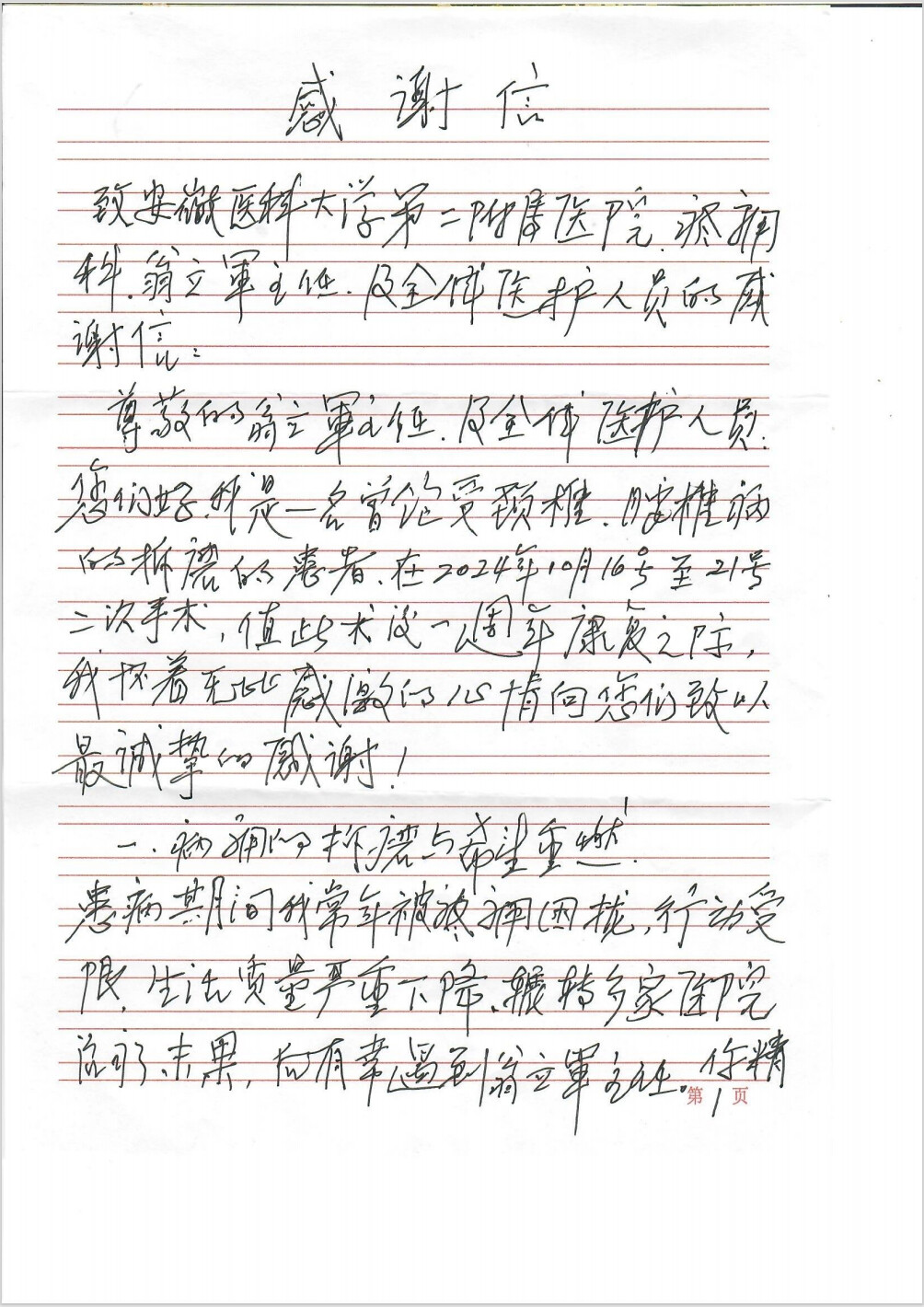 去年,她因严重腰椎病痛在这里接受治疗,如今疼痛已远去,她特地回来,只为把那封写满心意的信,亲手交给救治她的医生。