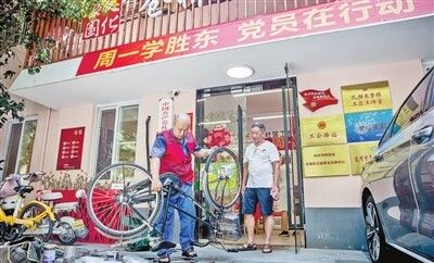孔胜东在杭州市拱墅区孔胜东公益事业发展中心为市民免费修车