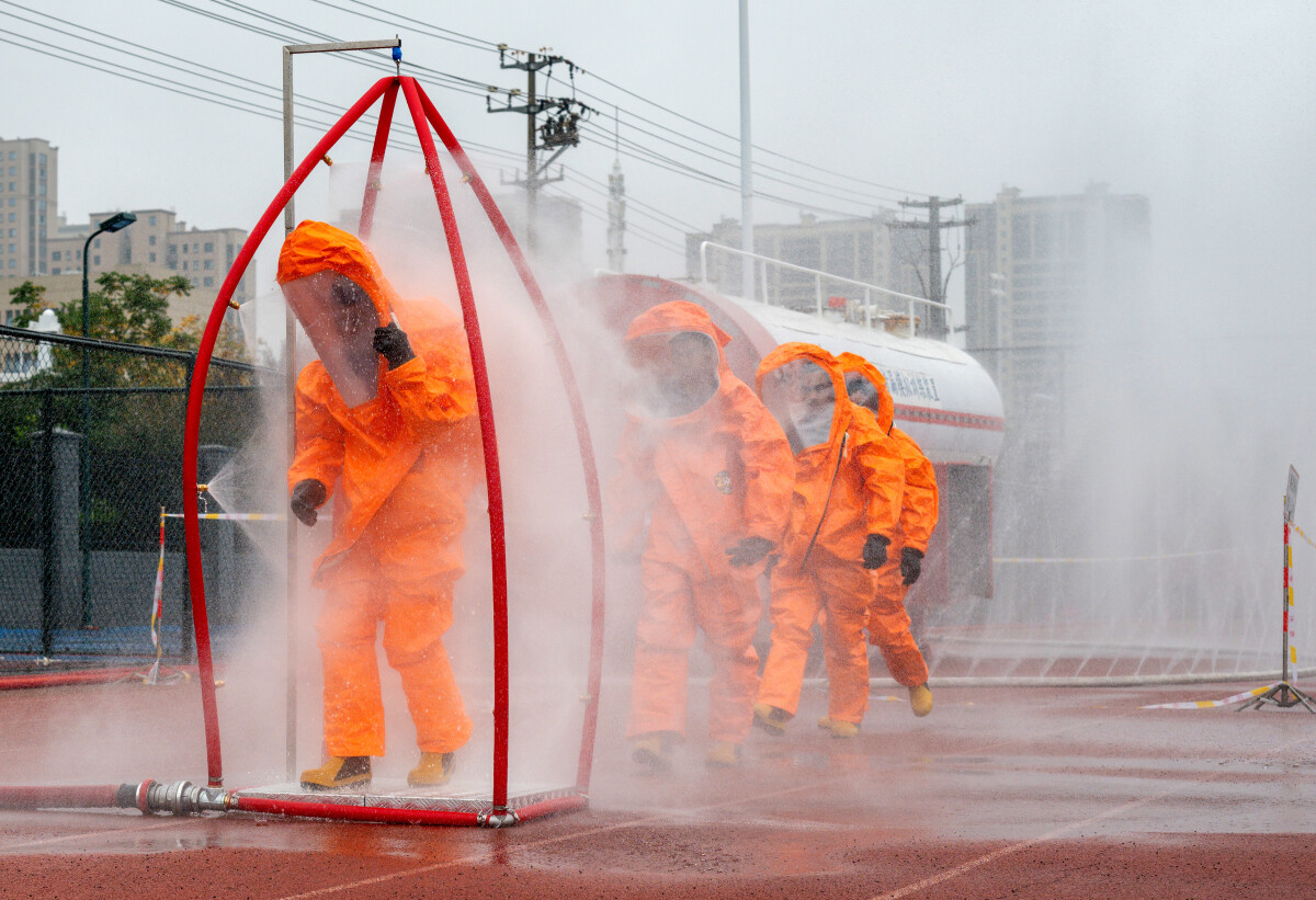 操场上,现场搭设还原了小餐饮场所、高校宿舍、电瓶车火灾现场等实景隐患区,真实还原了日常场景中的火灾风险点,让隐患“看得见、易识别”。