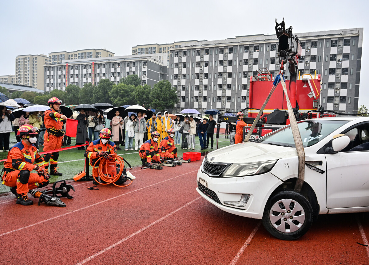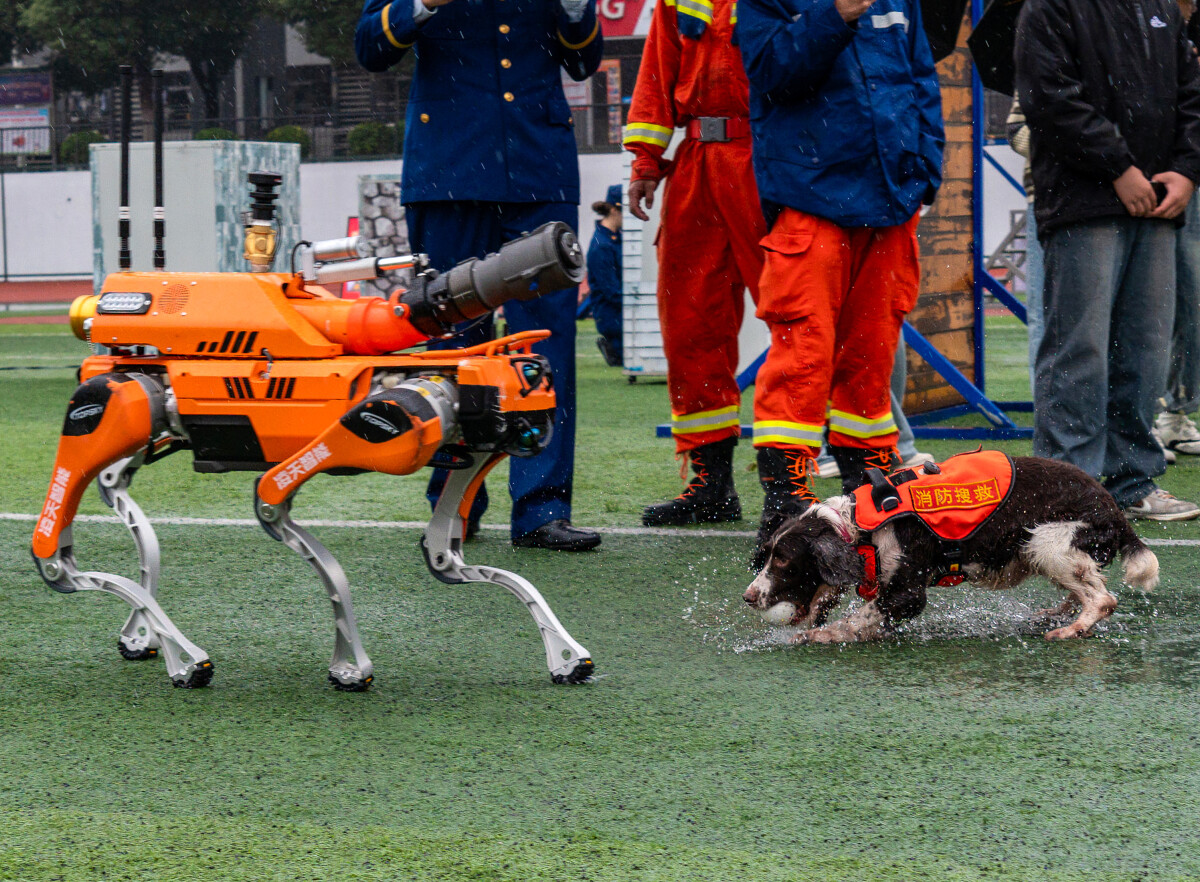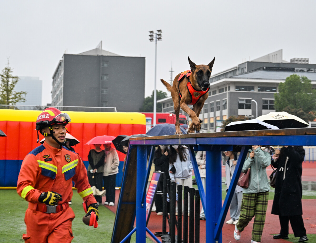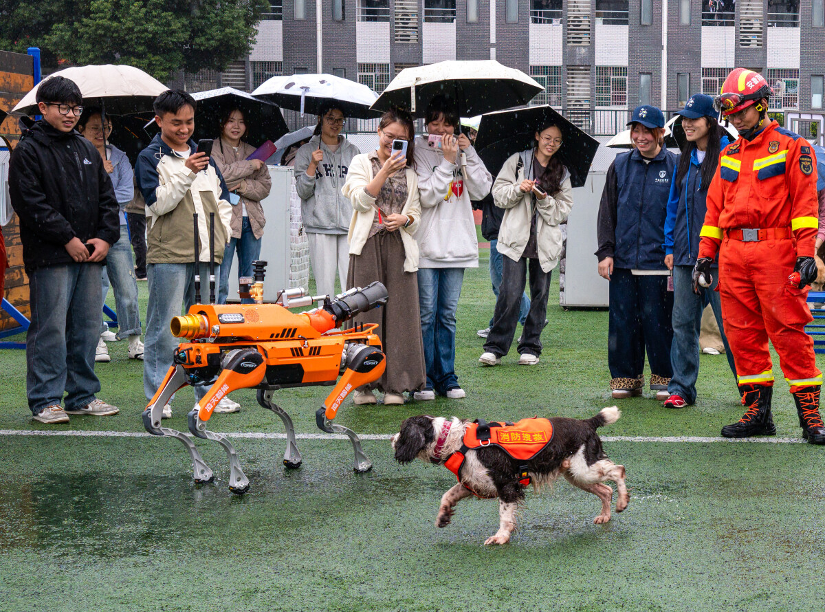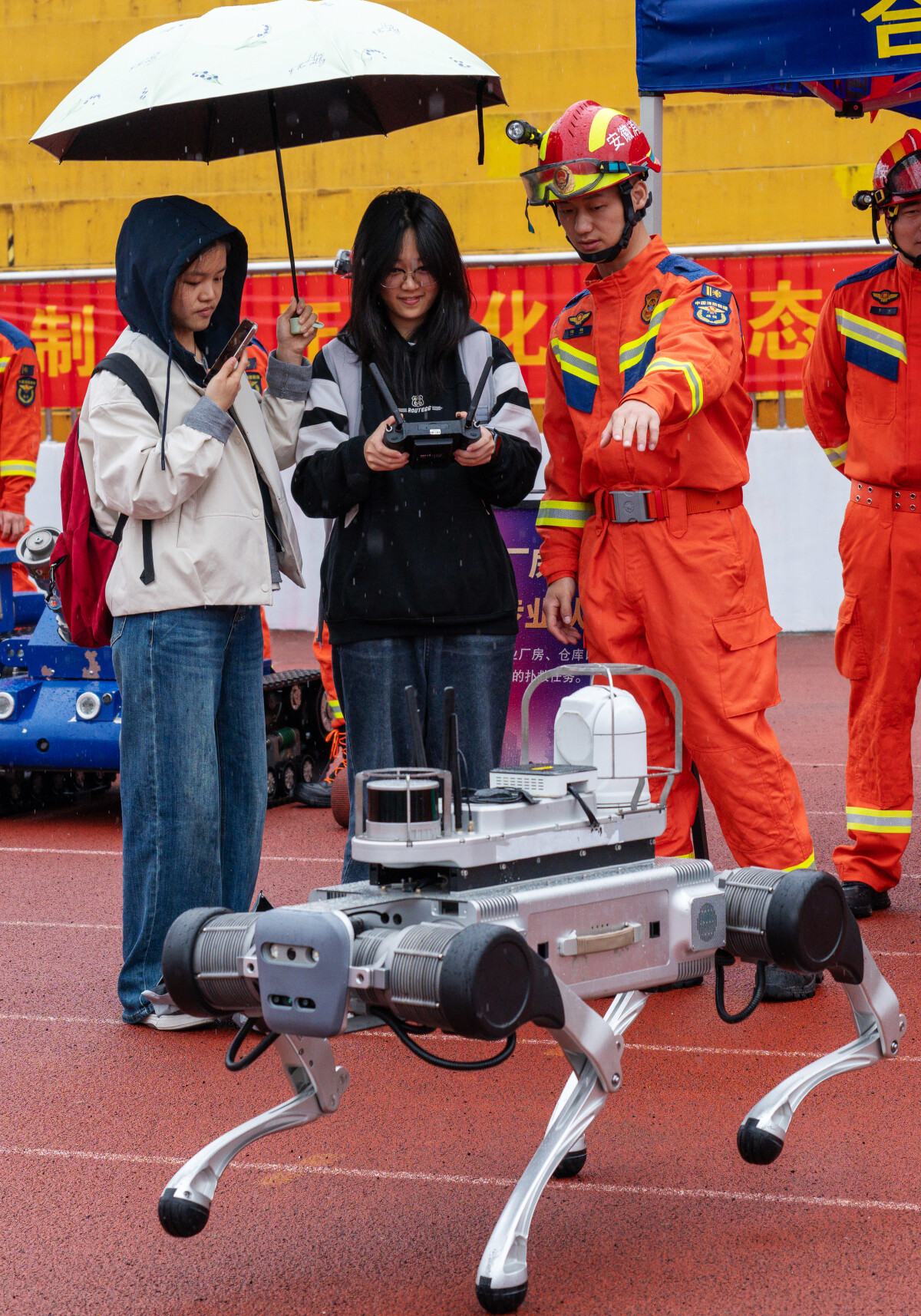 地震救援专业队、搜救犬专业队、交通事故车辆破拆演示、危化品事故救援专业队装备展示等专业队和高精尖器材装备展示,充分展现了消防救援队伍的专业素养。合肥经济学院学生占尔升感叹:“机器狗参与消防,科技让救援更安全!”