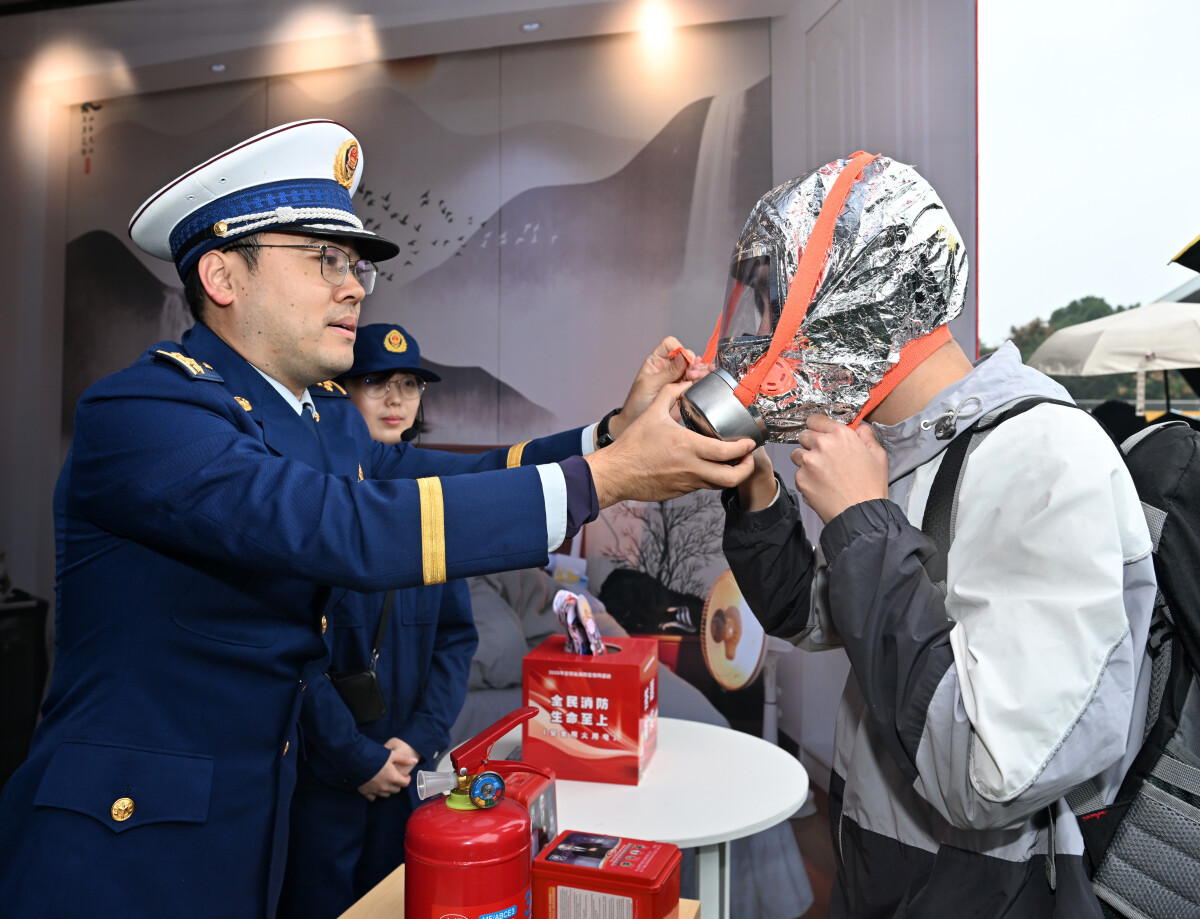在烟雾逃生体验区,学生们排着队,依次进入模拟烟雾环境,按照之前学到的逃生知识,低头、弯腰、用湿毛巾捂住口鼻,快速而有序地“逃”出危险区域。这些互动项目,吸引了高校师生和各界群众纷纷驻足参观学习。