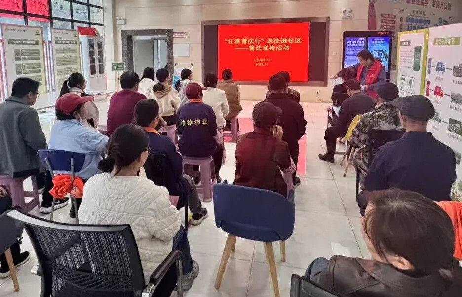 11月10日,天井湖社区开展“‘江淮普法行’送法进社区”主题宣传活动,将专业法律服务送到居民“家门口”,让法治温暖触手可及,切实打通法治建设服务群众的“最后一公里”。(天井湖社区 曹慧)