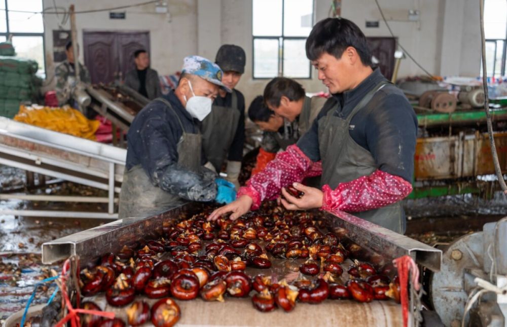 眼下,正值荸荠上市的季节,在庐江县白湖镇,村民们正抢抓晴好天气采收、清洗、分拣新鲜荸荠,田间地头和加工车间一派繁忙景象。一辆辆货车络绎不绝地驶入,将这些新鲜的地产美味,源源不断发往北京、上海、浙江等全国多地市场。