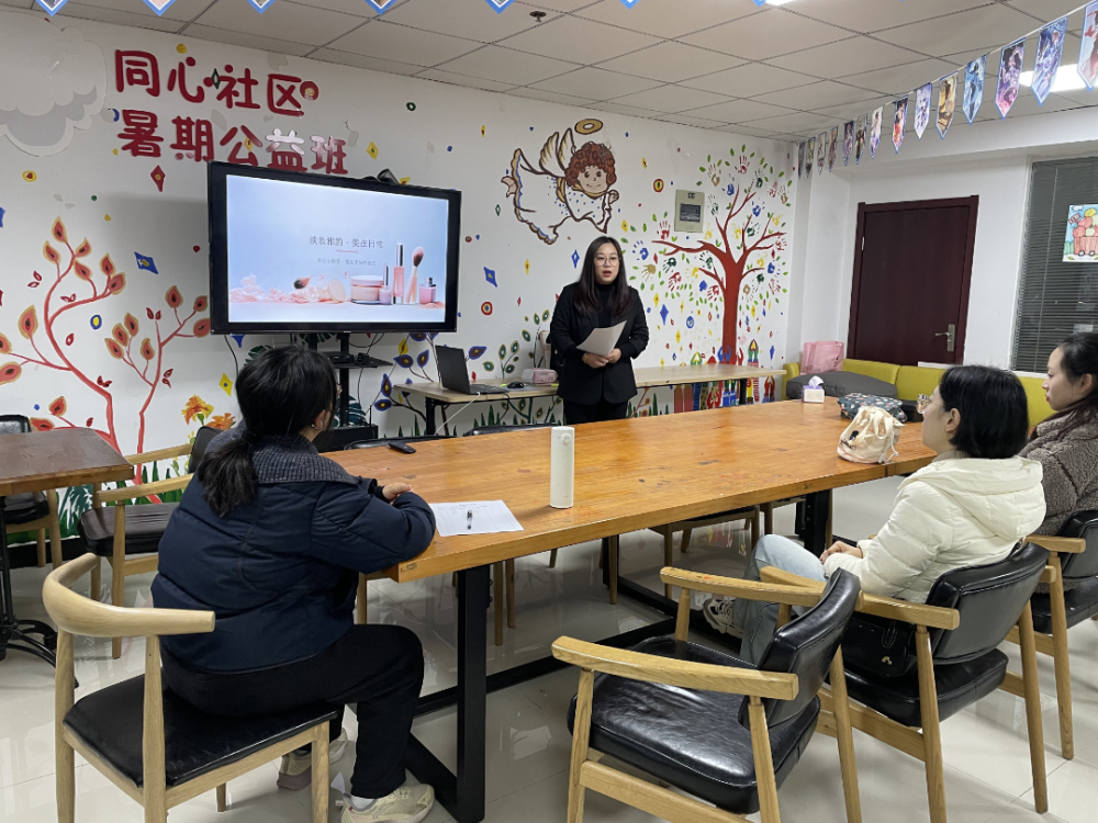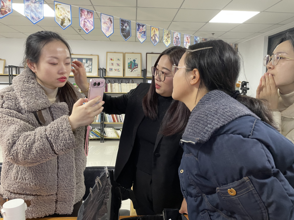 在江浦街道同心社区青年夜校的美妆课堂上,资深讲师通过真人示范,拆解底妆、眼妆、唇妆的每一个细节,手把手指导学员实操。从皮肤护理到色彩搭配,青年们不仅学会了提升气色的技巧,更在互相交流中收获了变美的信心。“原来化妆不是掩盖,而是突出自己的优点!”一位学员在课后如实说。