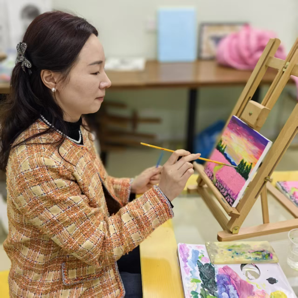 白马生活广场青年夜校开设油画课程,紧扣青年“解压赋能”需求,特邀专业美术教师授课。课程采用“基础技法+自由创作”模式,从色彩搭配、笔触运用等入门知识讲起,引导学员完成风景临摹与主题创作。青年学员反馈课程有效缓解了工作压力,同时搭建了邻里社交平台,实现了“技能提升+情绪疗愈+社群联结”三重效果。
