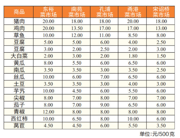 本期农贸市场97种监测商品价格较上期15涨69平13跌。从种类来看,蔬菜价格有所上涨;食用油、蛋类、豆制品和调味品价格基本平稳;肉类和水产品价格有所下降。