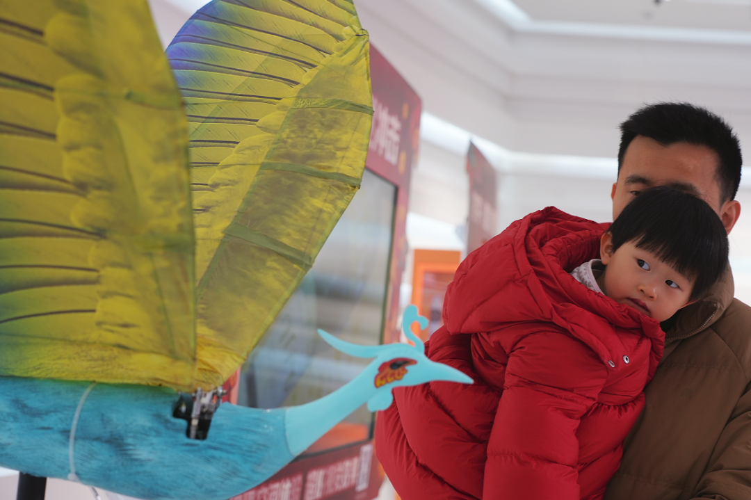 高仿生大型扑翼飞行机器人吸引孩童目光。