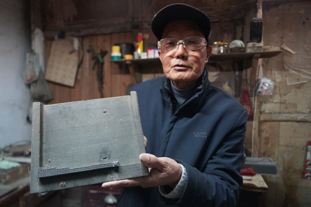 1987年,改革开放的春风吹遍小镇,盛诗经做了一个大胆的决定:从印刷厂停薪留职,贷款购买了印刷机等设备,在自己的老宅中开起了“新兴印刷作坊”。“头10年业务还行,主要帮镇上的一些客户印制信纸、票据等。”老人眯着眼回忆,高峰期时,全家老小都要加班加点才忙得过来。