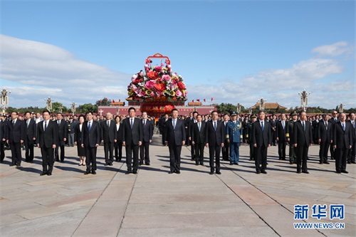 9月30日上午,党和国家领导人习近平、李克强、栗战书、汪洋、王沪宁、赵乐际、韩正、王岐山等来到北京天安门广场,出席烈士纪念日向人民英雄敬献花篮仪式。 (摄/新华社记者 黄敬文)