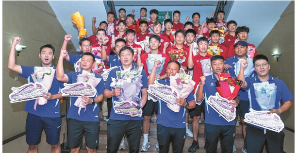 鲜花出现剩余,是因为球队中的几位核心球员因工作和学习未能与大家一起回家——队长吴磊作为“苏超”运动员代表前往省体育局开会;卢则灵、谢乃炯等则回到了各自的学校上课,继续开启学习和备战的“双城模式”。