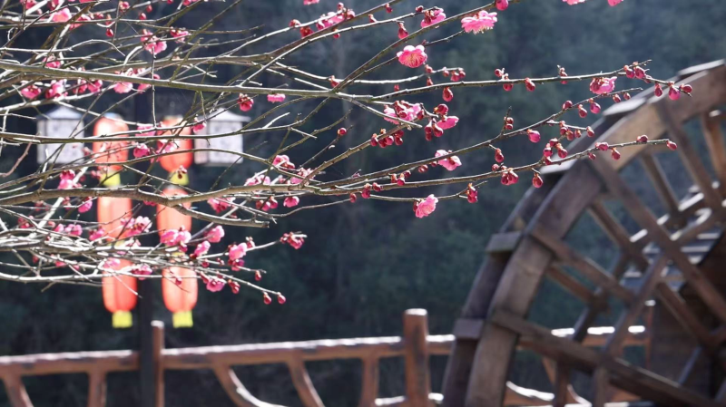 初春时节,徽州区杨村乡梅川村的梅花如约绽放,数百株形态各异的梅树交织成绚丽花海,点缀于粉墙黛瓦之间,吸引游客共赴这场“探梅寻川”的春日盛会。