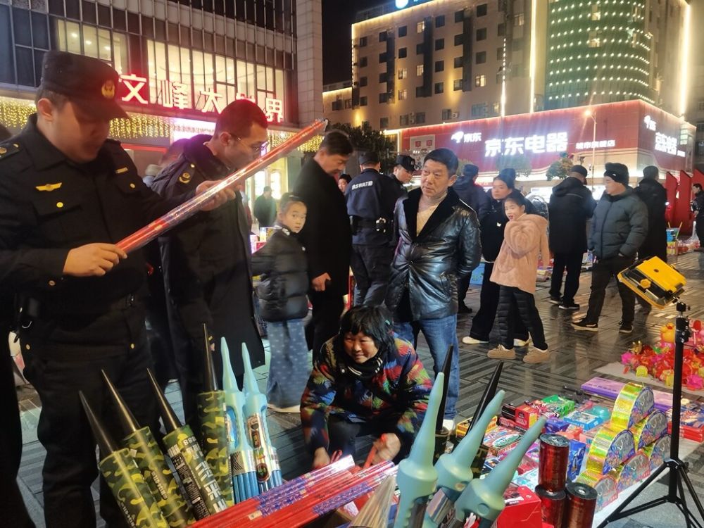 近年来,大型商业综合体文娱广场上无证经营和禁放区燃放行为时有发生。3月3日晚,市应急管理局联合市城管局、市场监管局、市消防救援大队等部门组成联合执法组,来到德诚城市广场、泰和吾悦广场、印象城等大型商业综合体文娱广场,对非法出摊无证销售烟花爆竹的小商贩进行劝阻,对广场及周边在交通工具上移动销售烟花爆竹的摊贩进行身份调查、劝阻、驱离,并向附近群众开展烟花爆竹销售、燃放相关法律法规宣传,切实消除烟花爆竹相关安全隐患。