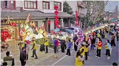 近日,余杭区百丈镇溪口村传梭博物馆举办百丈龙灯巡游活动,近百位村民代表、乡村创客、文化特派员及各地游客亲手制作一盏盏竹编花灯,安装在板凳上连接成一条长龙,巡游全村、欢闹新春。这也是溪口村依托乡村博物馆资源,创新开展“博物馆里过大年”活动的一项品牌活动。